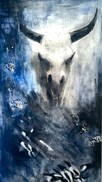 Blue Cow- 4ft x 8 ft Mixed Media on wood panel Sold