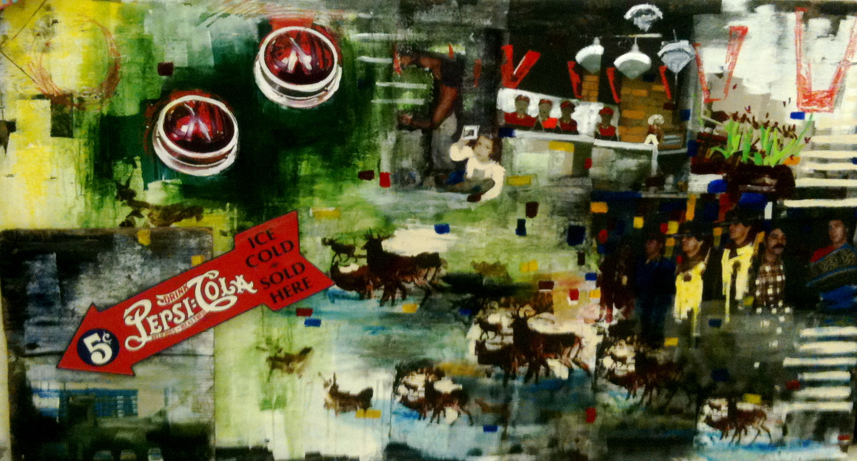 Roudy- 4 x 5 feet Mixed media on wood panel