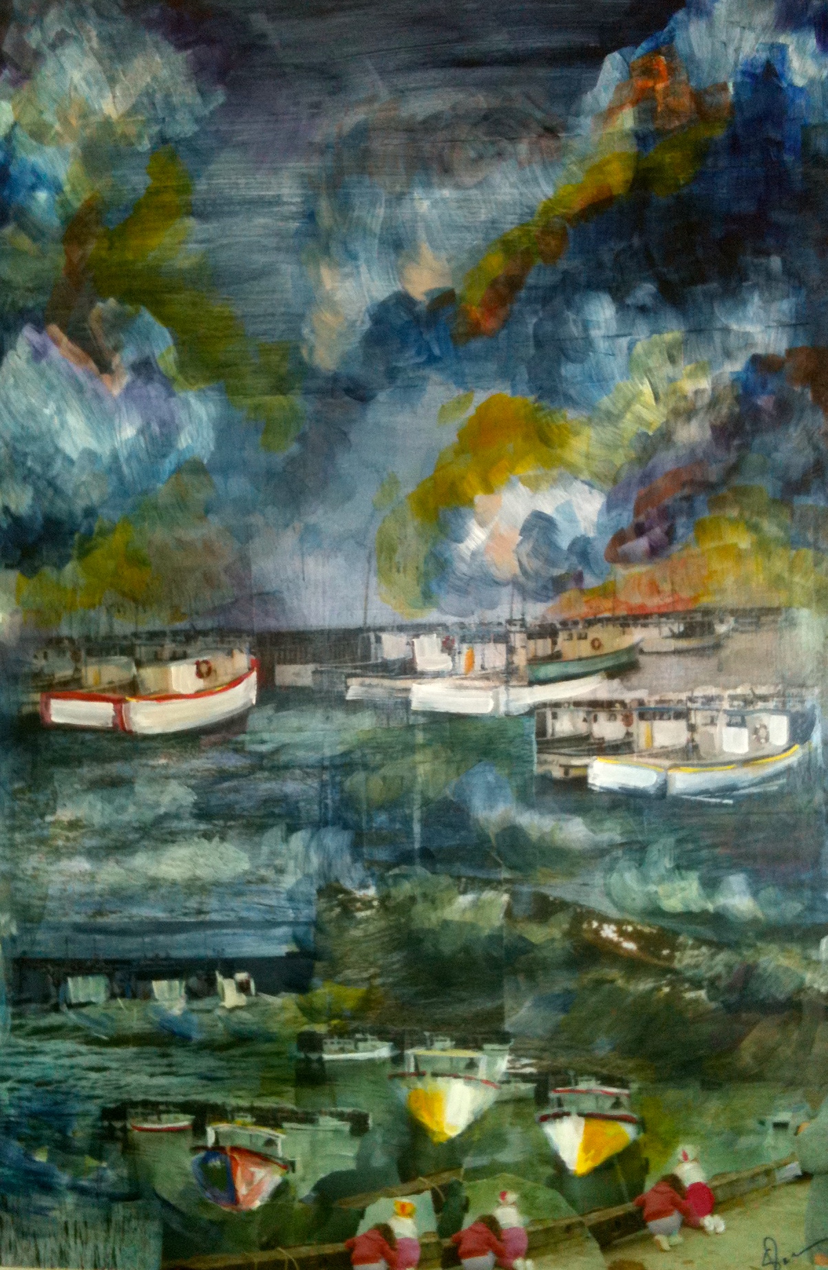 Lobster Boats- 2ft x 3ft Mixed Media on wood panel Sold