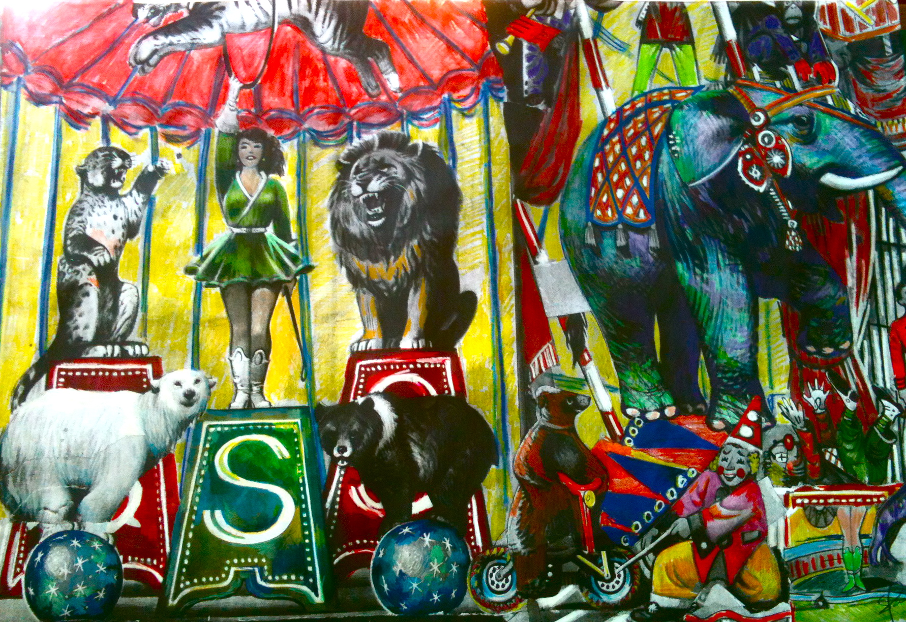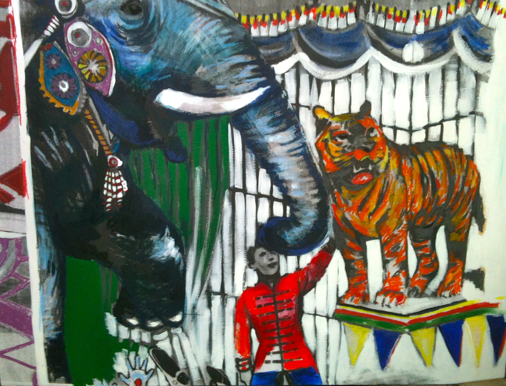 The circus tamer- 3ft x 4ft Mixed Media on wood panel
