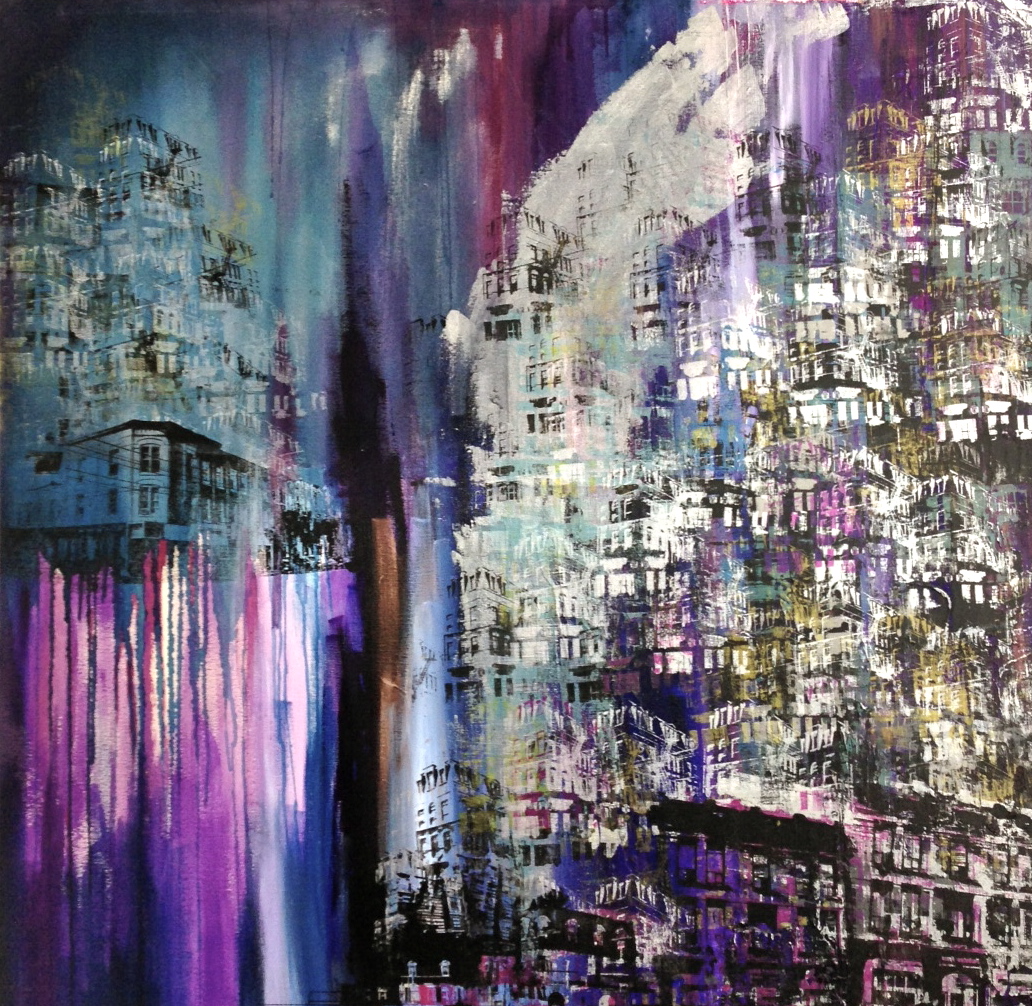Summer Nights- 4ft x 4ft Mixed Media on wood panel